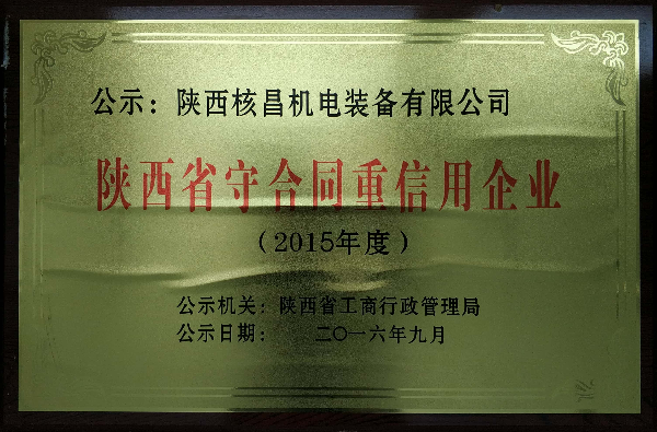 陜西省守合同重信用企業