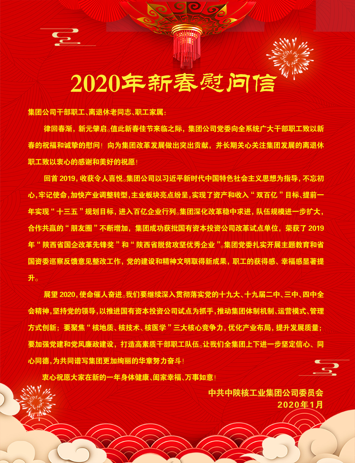 中陜核工業集團2020年新春慰問信