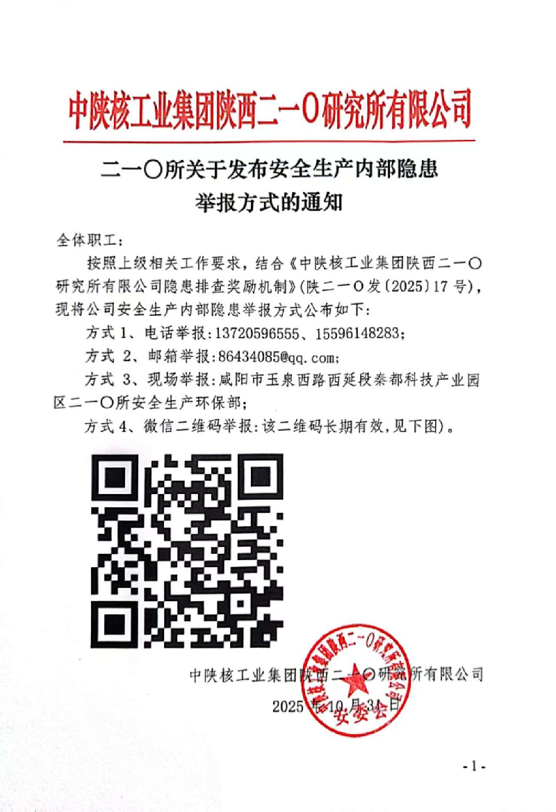 關(guān)于發(fā)布安全生產(chǎn)隱患內(nèi)部舉報(bào)方式的通知
